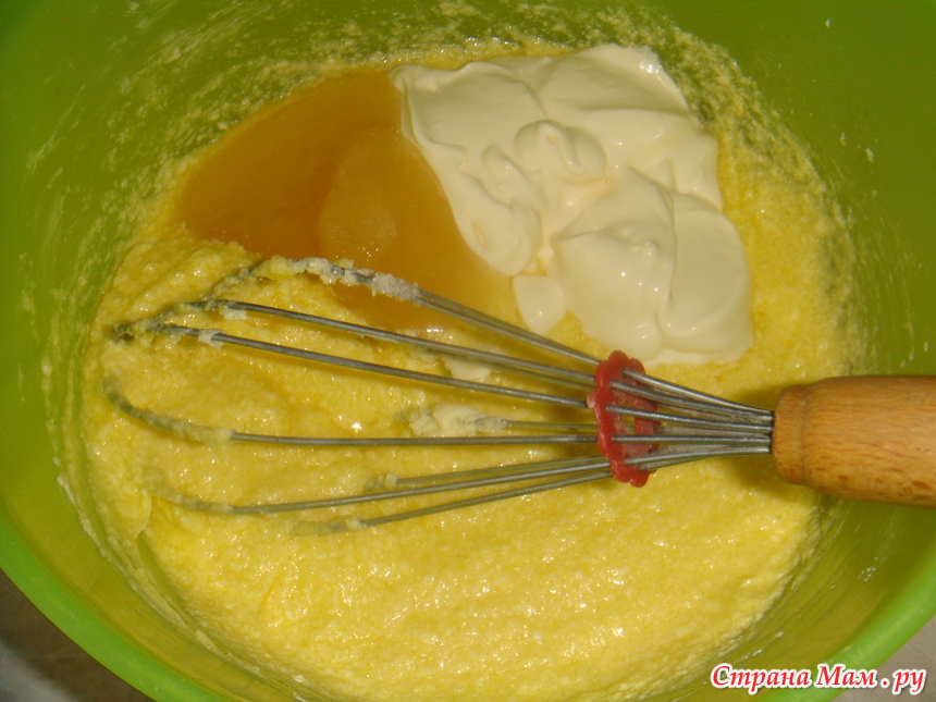 Добавить яйцо, сметану, мед.