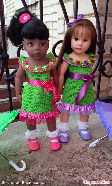 Всем доброго дня! Здравствуйте! Предлагаю Вашему вниманию платья для кукол, всеми любимой фирмы Готц. Платья связанны мною из 100 % хлопка СОСО, крючок 1,5 мм. Позируют мои Девочки: Надя Steiff by Gotz 2003 года, Клавдия и Нина Gotz 2011 г. Спасибо, что заглянули.