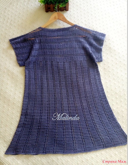 Эта туника связанна филейным узором в двух направлениях. Квадратная кокетко вяжется поперек а подол сверху вниз. Вроде простенькая модель но тем не менее смотрится очень стильно.