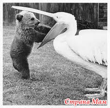 Смешная птица пеликан!Он грузный, неуклюжий,