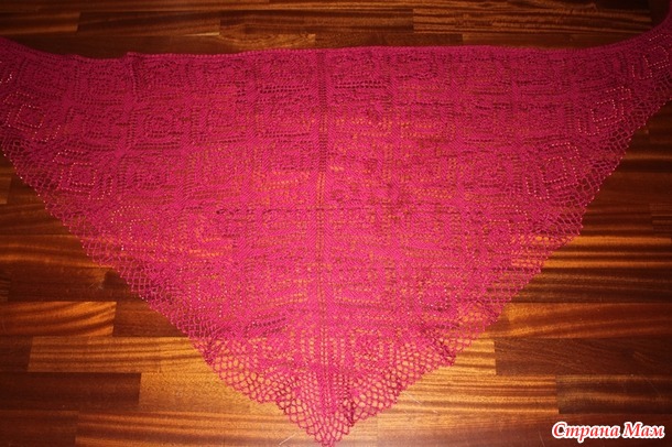 Связалась у меня шаль "Букет из гладиолусов" по онлайну от Аленький 13 https://www.stranamam.ru/post/12815974/?page=8#comments, очень красивый дизайн. Пряжа полушерсть (30% шерсти,70% акрила,1600м в 100г.) от ТМ "Наша пряжа", расход 140 г, вязала в 3 нити, спицы №2,5, бисер китайский, около 70 г. Размер 165 на 83 см, делала 4 повтора тела шали. Ну и фото красотки