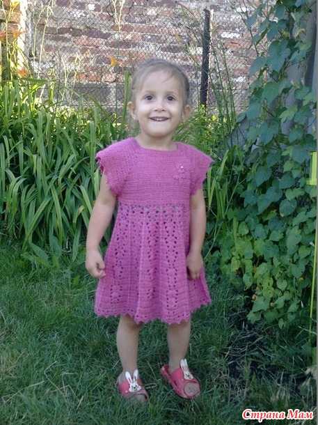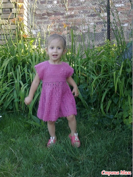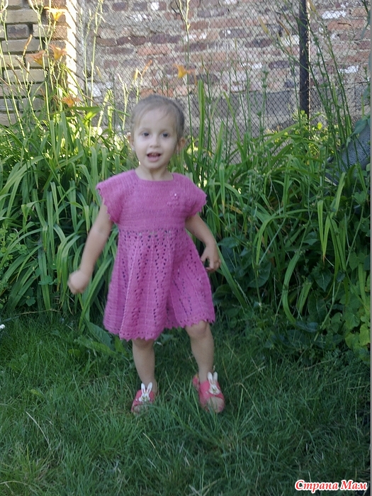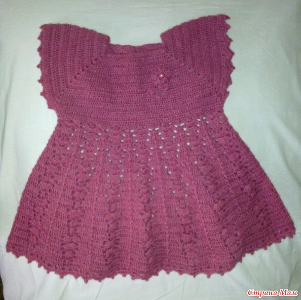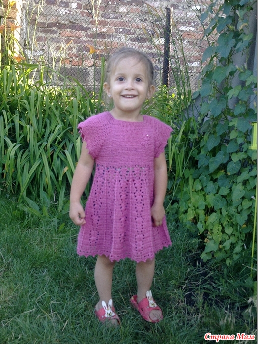 Из одного, немного неполного мотка пряжи, связалось детское платьице