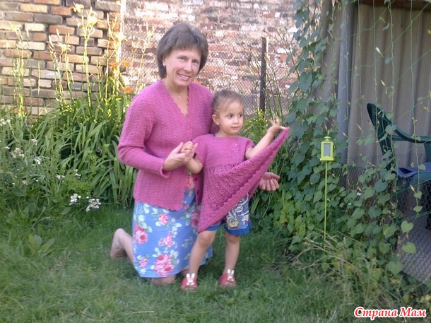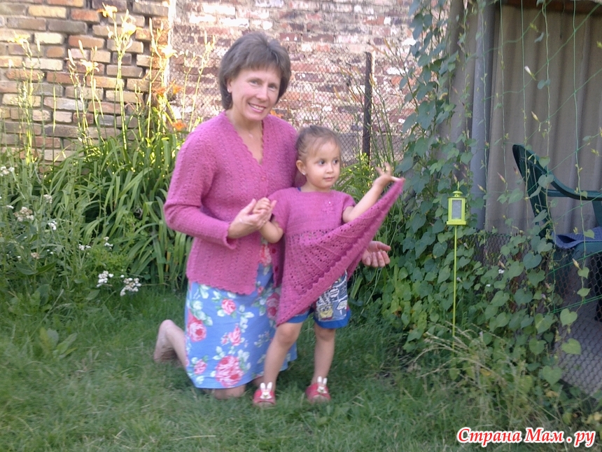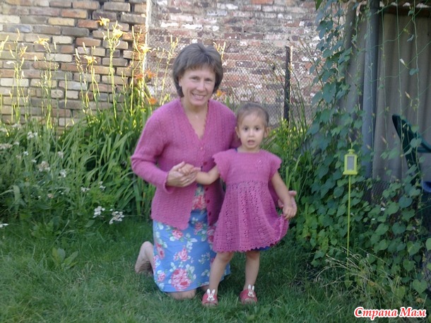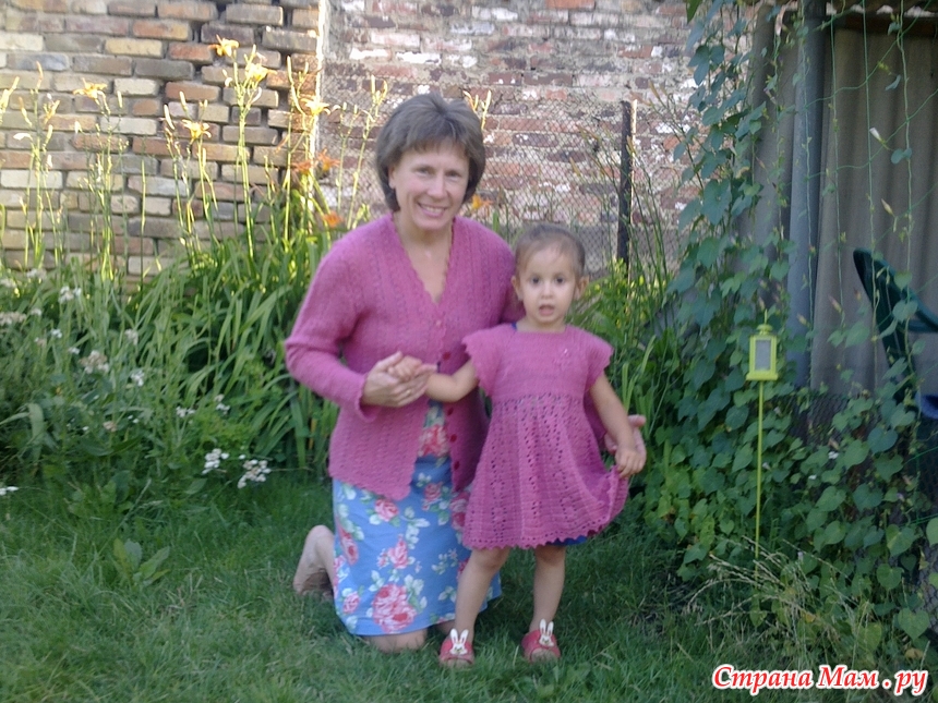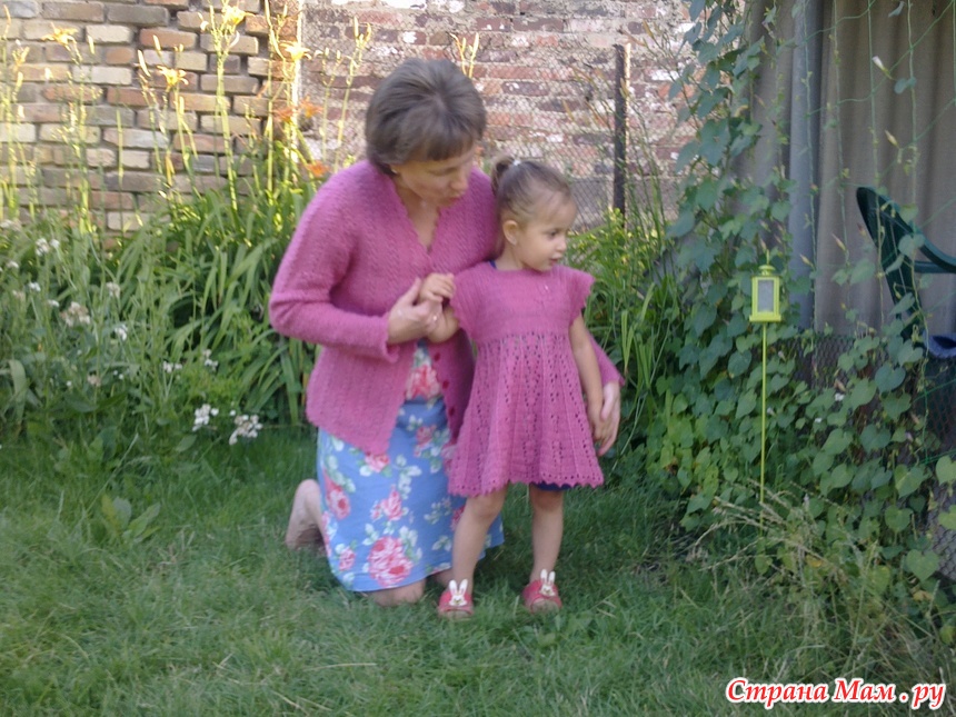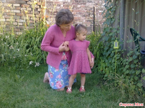 А это мы вместе: я в своей кофточке из такой же пряжи(опубликую позже), дитё в платье.