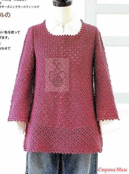 Эта элегантная туника расклешена к низу так же выполнены длинные рукава. Узор прост исполнении но смотрится очень красиво.