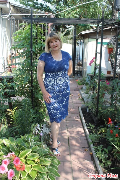 Очень давно понравилось это платьице, но как то руки не доходили. Правда года три назад я вязала в подарок куме. Она носит с удовольствием и я