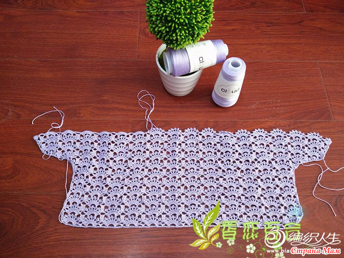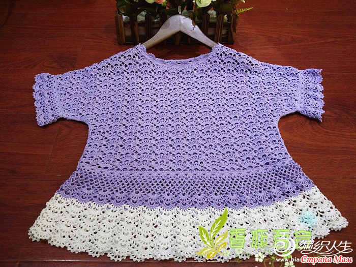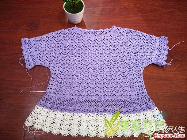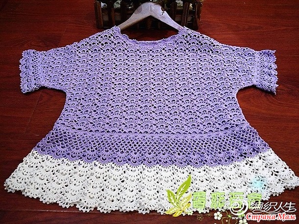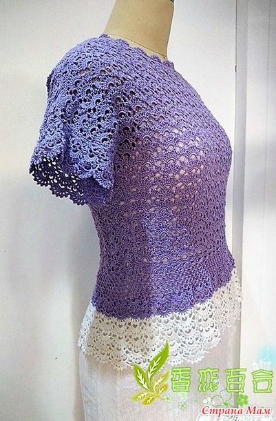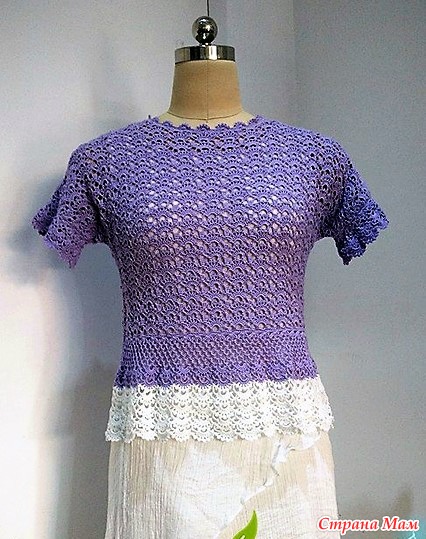 Эта кофточка А-силуэта связанна из пряжи двух цветов. Верх вяжется сиреневой пряжей а подол белой. Узор очень красивый напоминает веерообразные цветы. Пряжа 100% шелк. Крючок 2.00 мм К Верх кофточки вяжется снизу вверх а от него сверху вниз вяжется подол. Небольшой МК от мастерицы. Читать полностью