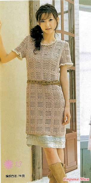 Это платье выполнено в технике филе. Благодаря геометрическому узору оно смотрится очень стильно и элегантно.