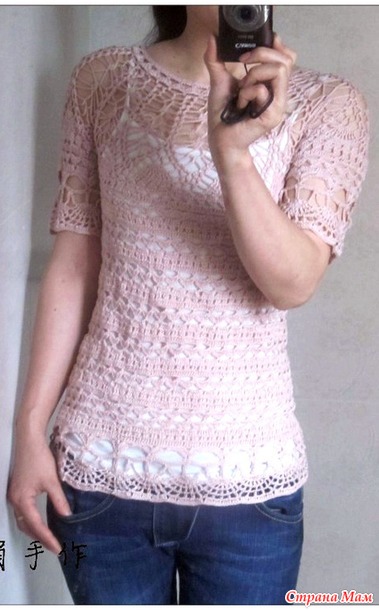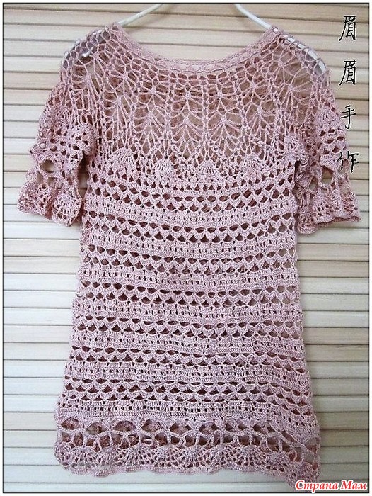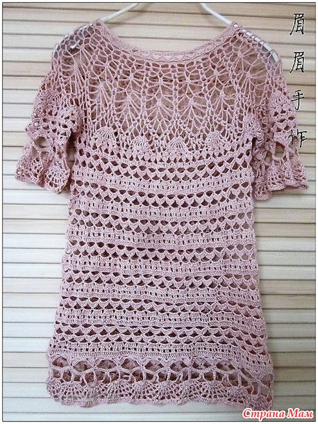 Эта туника вяжется очень нежными и оригинальными узорами.