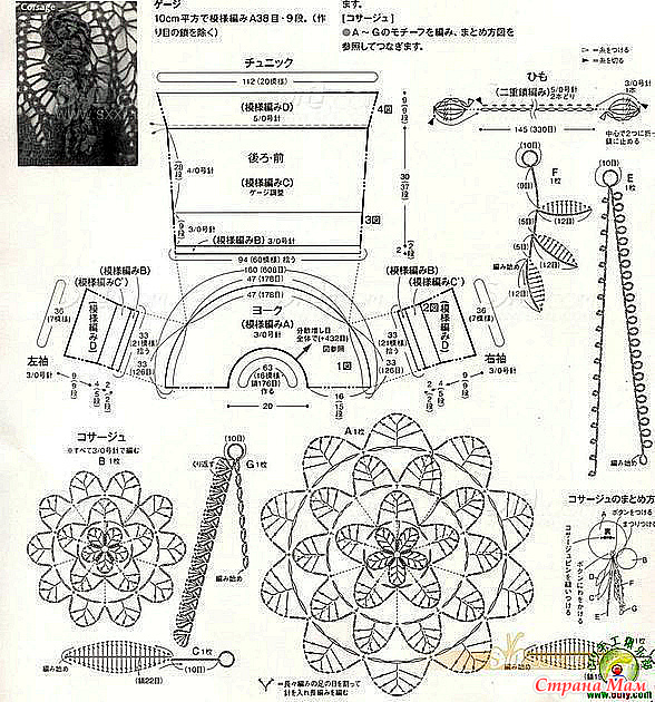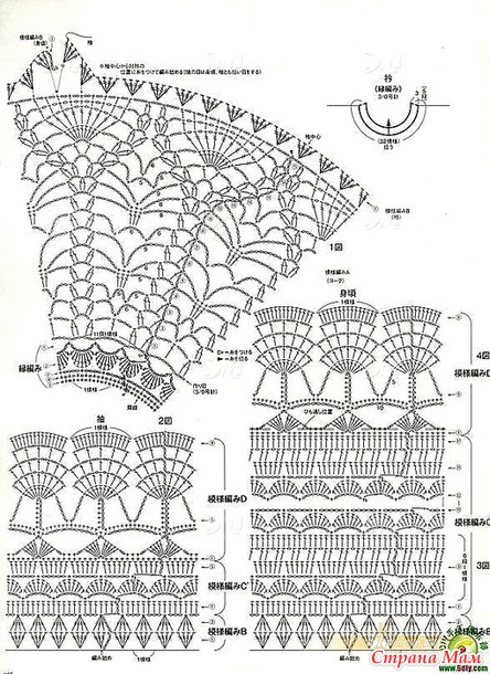 На этой выкройке даются схемы элементов ирландского кружева которыми можно украсить круглую кокетку.