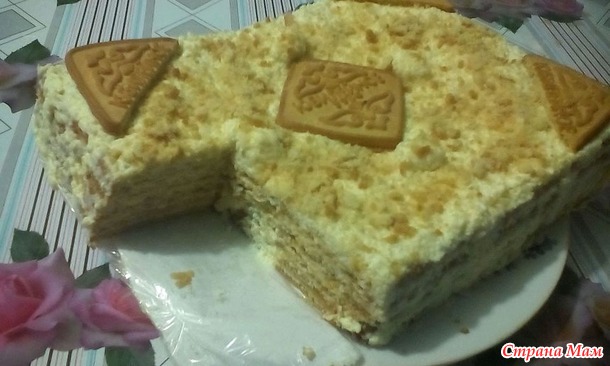 Вообще - это тортик моего детства, его папа нам всегда готовил ( как раз потому, что без выпечки). Только он его складывал в форме домика, и назывался он "Шалаш"