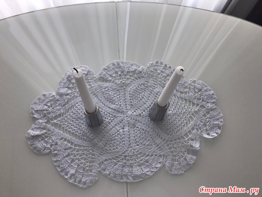 просто когда уже накрахмалила и прогладила-увидела, но уже не стала довязывать, хозяйка забрала и так