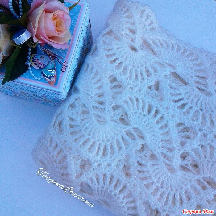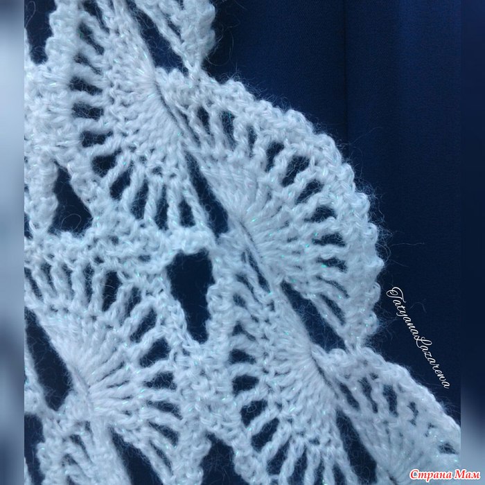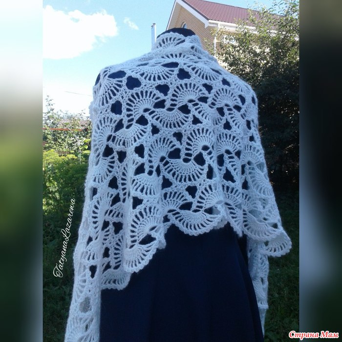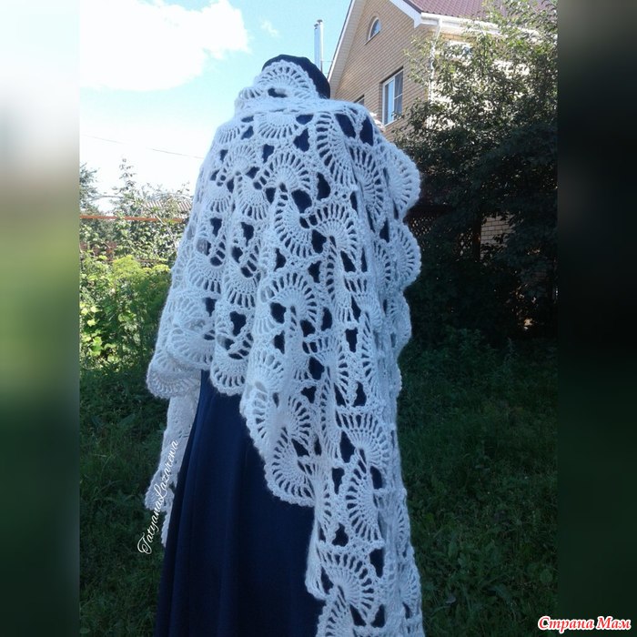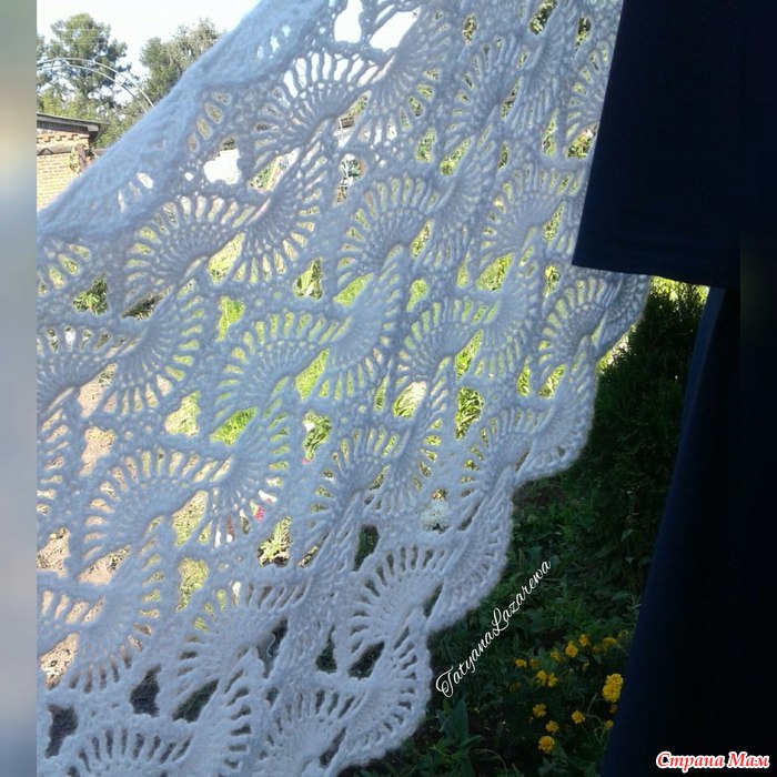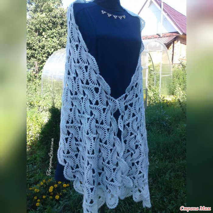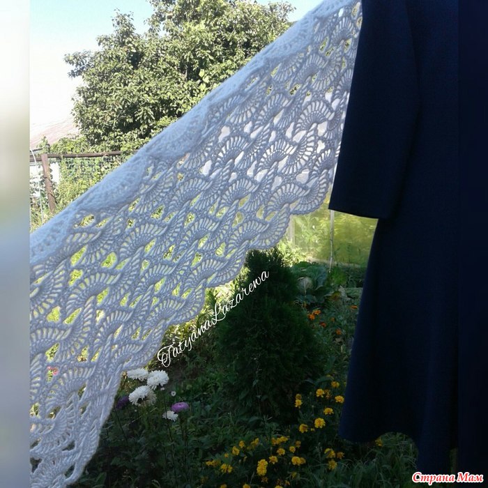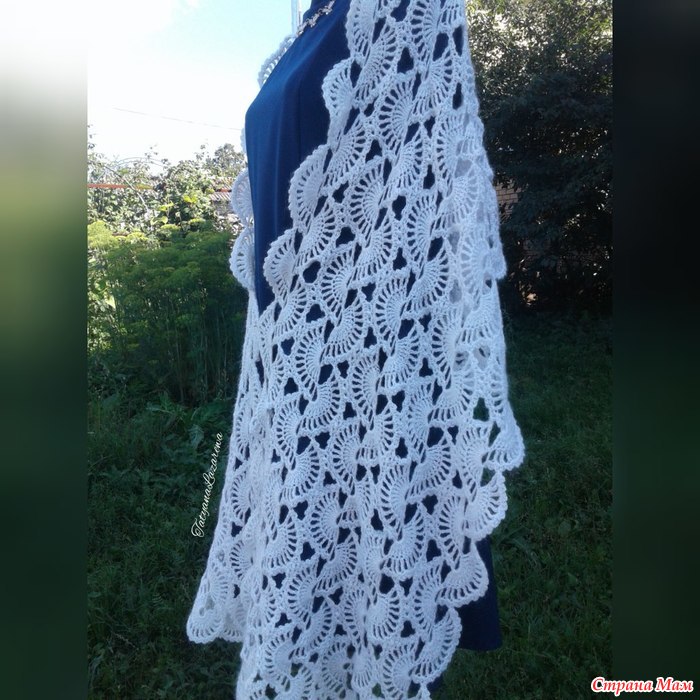 У меня подоспел новый Палантин. Он связан крючком (естественно) из ленточного кружева