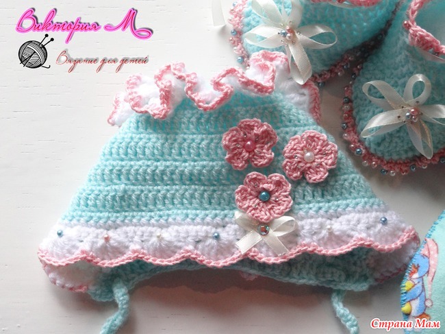 Здравствуйте! дорогие рукодельницы представляю вашему вниманию комплект который я связала для выписки новорожденной девочки. Вязала из пряжи: Пехорка детская новинка 200 метров в 50 гр. крючок 2.5 А вот и комплект наслаждайтесь просмотром
