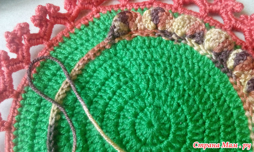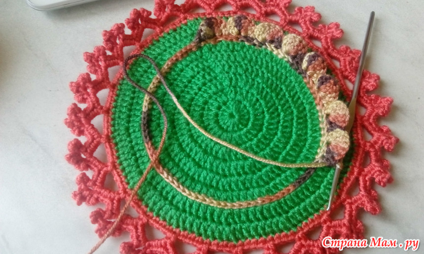 Нить закрепить, отрезать, спрятать, далее вяжем окантовку отделочным цветом: