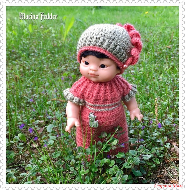 Шапочка. Столбики без накида. Отворот - резинка из рельефных столбиков. Отделка (см. рукав на цепочке из воздушных петель по высоте шапочки). Пришиваем верх и низ. Примеряем комплект и любуемся результатом.