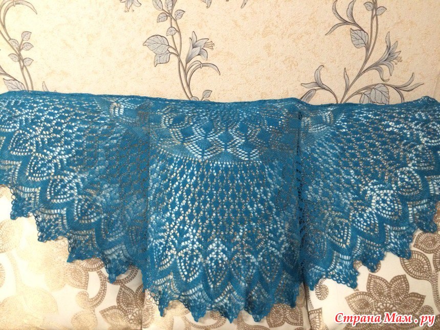 Вязалось достаточно просто и интересно. Еще сказала бы вязалось быстро. Поддерживала и подбадривала меня моя подружка Марина. Так как это моя первая шаль спицами.