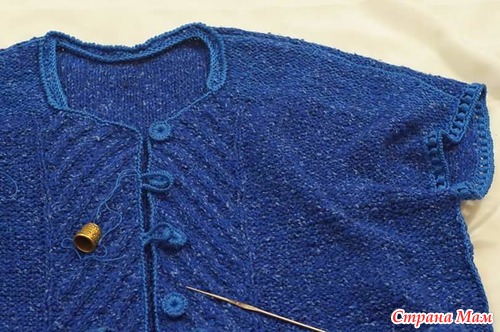 Что пришлось мне исправлять....-перевязывать...??..так как полотно длинное,плечевые швы сияли дырочками...и я распустила все три части (полочки и спинку на 10см...и добавила к основной нитке в тон хлопковую ализе (560 м на 100гр)..теперь у меня получилась как-бы уплотненная верхушечка...все срезы я обвязывала только хлопком,причем плечевые и боковые обвязывпла и соединяла и с внутренней стороны и с внешней...