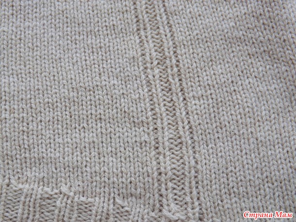 А еще я делала спущенную спинку ( делала её укороченными рядами ) хотя можно отдельно начать спинку а потом продолжить вязать вместе с передом по кругу...