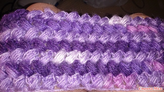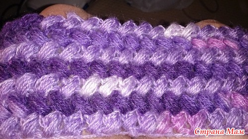 Вязала из неизвестных остатков - многие идентифицировала как акрил, немного хлопковой ниточки и нижние два ряда матово-сиреневая нить похожа на БАМБУК...