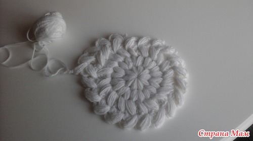 Начала вторую шапку как Вы снизу к макушке. Пока ничего хорошего не получается. Думаю все же перевязать...как первую с макушки