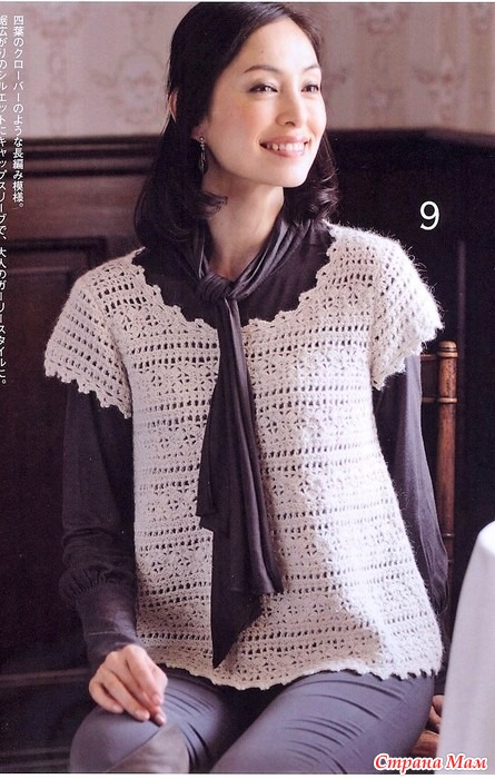 Ажурная кофточка из мохера крючком.