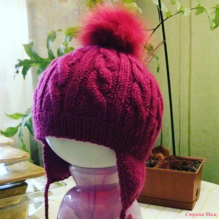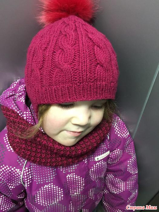 Еще весной связала внучке бордовую шапочку. Из Ланаголд классик. Помпон сама сделала из обрезков меха )) Малая носила и носит с удовольствием.