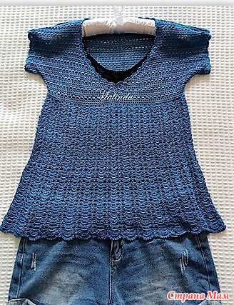 . Синяя кофта с треугольным вырезом.