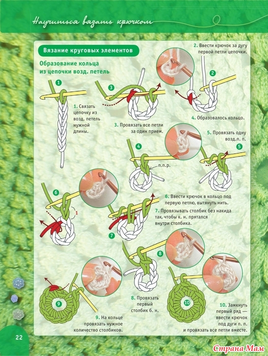 Страна Мам . Вязание крючком для начинающих (отличный пошаговый самоучитель)