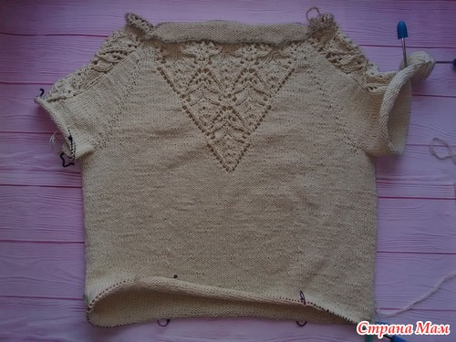 Но совсем недавно встретила способ ( не могу найти куда ссылку припрятала, найду, добавлю в пост), ко которому в полотне спинки продолжаются регланные прибавки