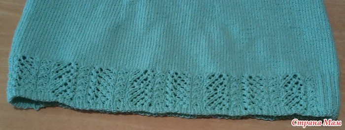 Провязала последний ряд в ритме 1 лиц 1 изн , закрыла иглой.