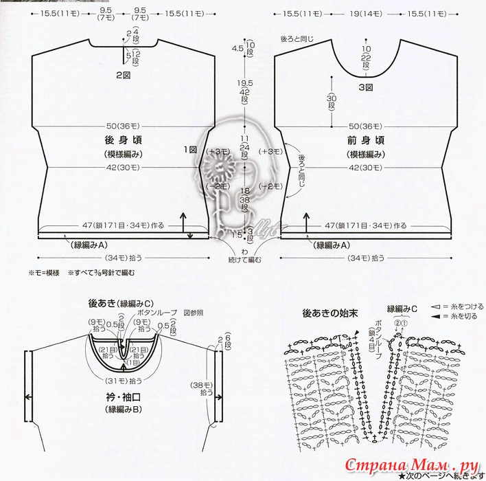 Эта кофточка связана горизонтально расположенными эффектными узорами.