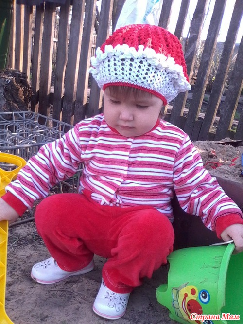 Девочки, оцените мою новую работу: красно-белый беретик для дочки... а вот без бантика еще в стадии изготовления Великоват получился, но дочке понравился. Вязала вот по этому мастер-классу http://www.u-mama.ru/ Читать полностью