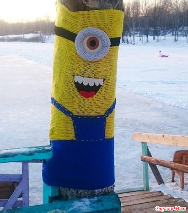 Сначала любители вязать на спицах и крючком вышли на улицы, чтобы «раскрасить» в яркие цвета деревья, столбы, машины, лавочки.