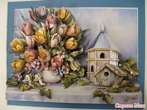 Старинный вид рукоделия европейского происхождения. Преимущественно используется в качестве основного элемента декора и отделки поздравительных открыток, памятных фотоальбомов, подарочных упаковок, а также для создания картин в данной технике.