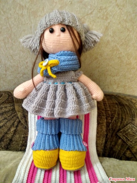 Штанишки можно и пошире было связать - это уже после сбора куклы стало понятно.