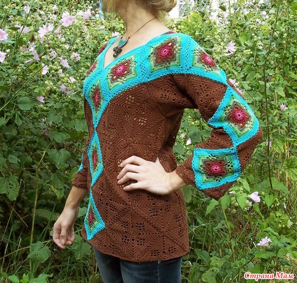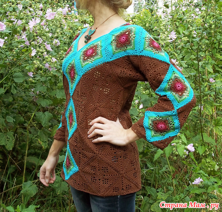 Предлагаю две туники, связанных за последние полгода, коричневая туника с вертикальной вставкой связана из пряжи мерсеризированный хлопок 100% YarnArt Lily крючок 1,5. Мотив "Викторианская решетка"-схема приложена