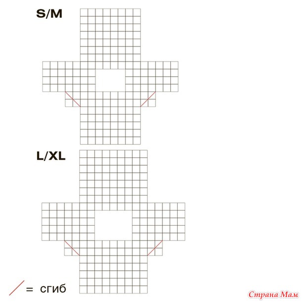 Для размера L/XL середина проходит между 9-м и 10-м рядами.