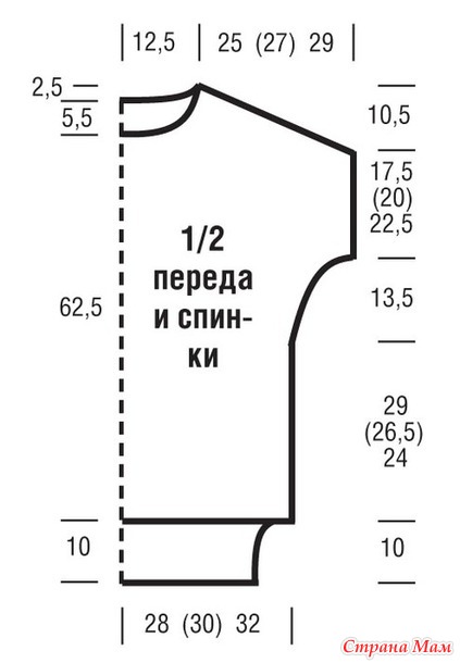 Через 10,5 cм = 26 р. от начала плечевых скосов закрыть, соответственно, оставшиеся 4 п. плеча.