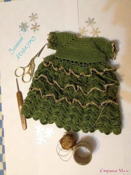 Платье из пряжи Вита Бриллиант, крючок № 2,75 Китайский. Шапочка и варежки из Ярн Арт Беби, детский акрил, отвороты и помпон из Ализе с пайетками и метанитом.