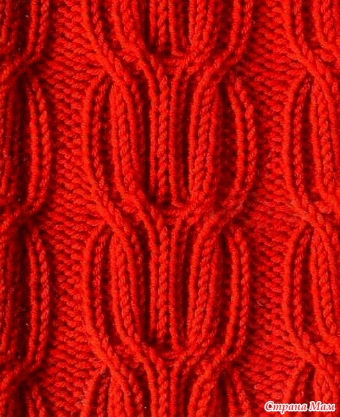 Очень изящный узор, требующий при выполнении некоторого терпения. Пряжу для него лучше использовать не очень толстую, иначе косички будут выглядеть некрасиво.