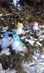 Снеговички-сплюшки так понравились, что к очередному Новому году снова захотелось их связать. Хорошо, есть кому подарить! В этом году они связались яркие и солнечные! Пряжа все та же, акрил, теперь Пехорка Бисерная. Ниточка потоньше, чем Детская новинка, и к ней взяла крючок 1,4. К акрилу я как-то быстро приноровилась, и не скрипит даже, мне нравится с ним работать.
