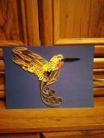 Птица, соединила три техники квиллинга, на гребне, свободные ролы, и завитушки.