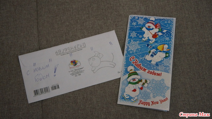 Открыточка премиленькая с очень тёплым, душевным поздравлением и чудо-собачка на конверте!