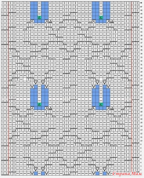 Ширина узора 54п., по высоте повторяем с 1р. по 30р.
