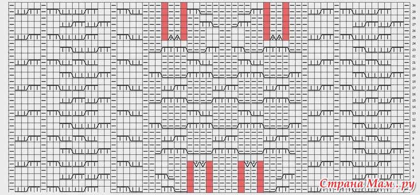 Ширина узора 54п., по высоте повторяем с 1р. по 30р.