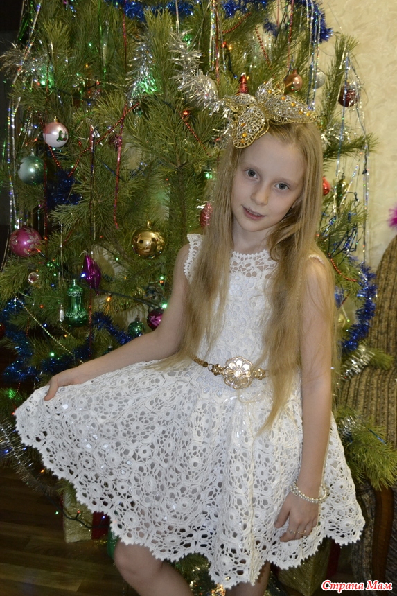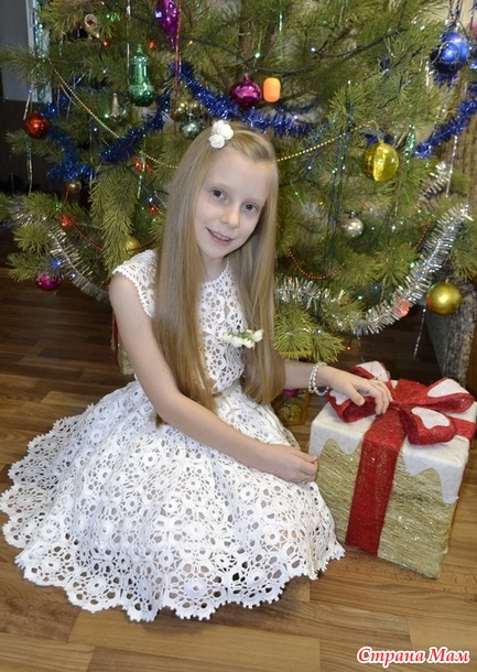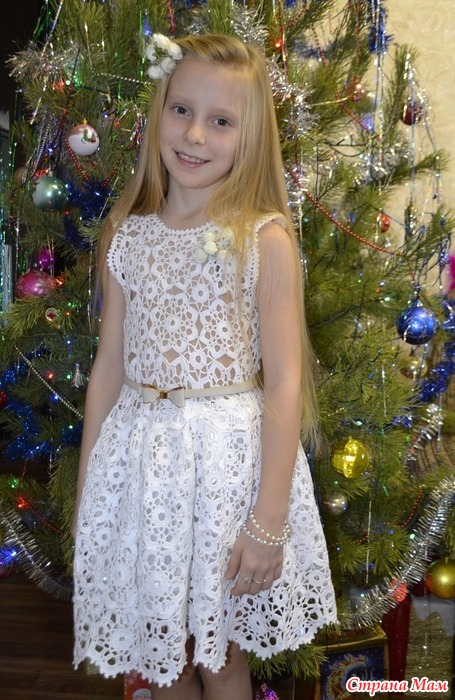 Связала для дочки платье, нитки Coco, ушло 350 гр, крючок 1,75, юбка солнце