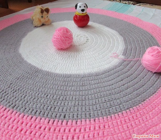 Коврик вязаный Розовое утро, вязание крючком, изделие ручной работы,