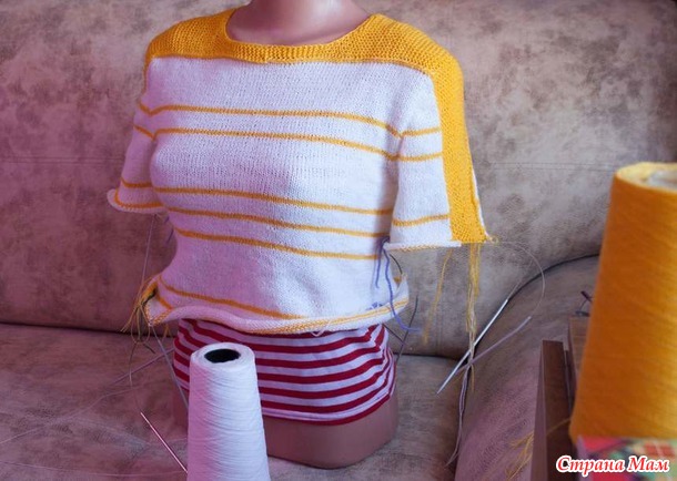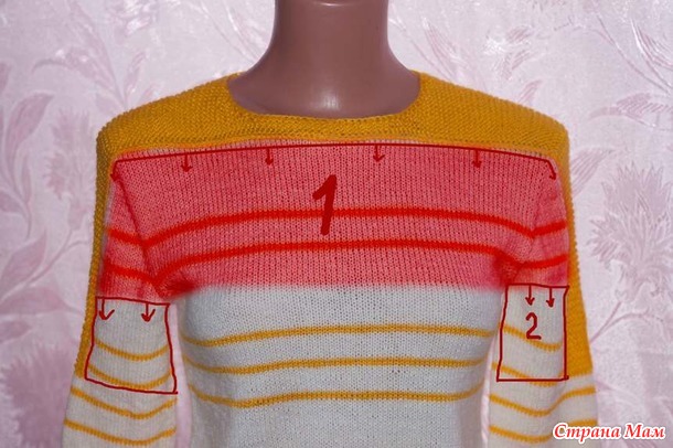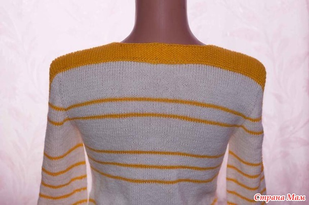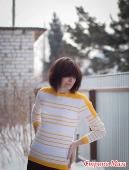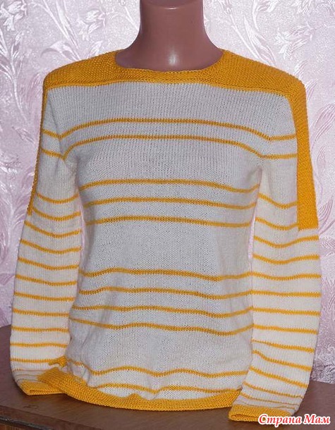 Девчата, всем привет. Первый раз вязала по описанию. Выбрала джемпер Mon Ami Breton от дизайнера Hinterm Stein. Пряжа бабинная пехорская п. ш в 3 сл., спицы №3,5. На джемперок мой ушло ровно 200гр., что очень приятно. Хочу сказать, что я не разочарована, вязала полностью по описанию без малейшей отсебячины. Посадкой довольна, оцените сами. Данный способ довольно не обычен.