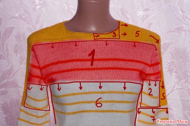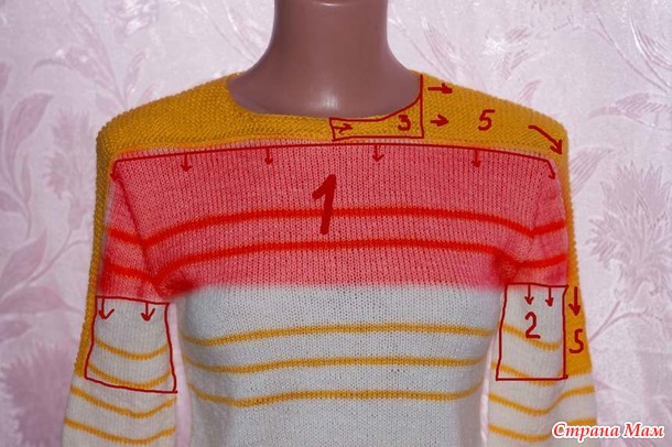 После эти зап. части соединяются в общее плечо и вяжутся, постепенно присоединяясь к пункту 1 и 2 ( на рисунке п. 5)