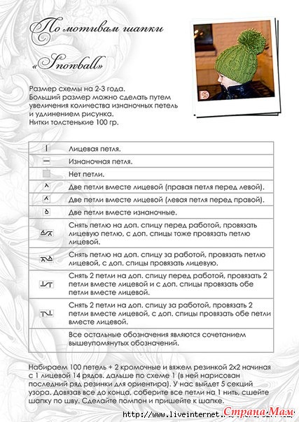 Описание нашла в интернете, пост составила S-Shishova в Стране Мам здесь https://www.stranamam.ru/post/6647574/Вязала я эту шапку из пряжи софит по германской технологии, 45 % шерсть,55 % шелк, Попробовала сначала в 2 сложения, мне не понравилось,